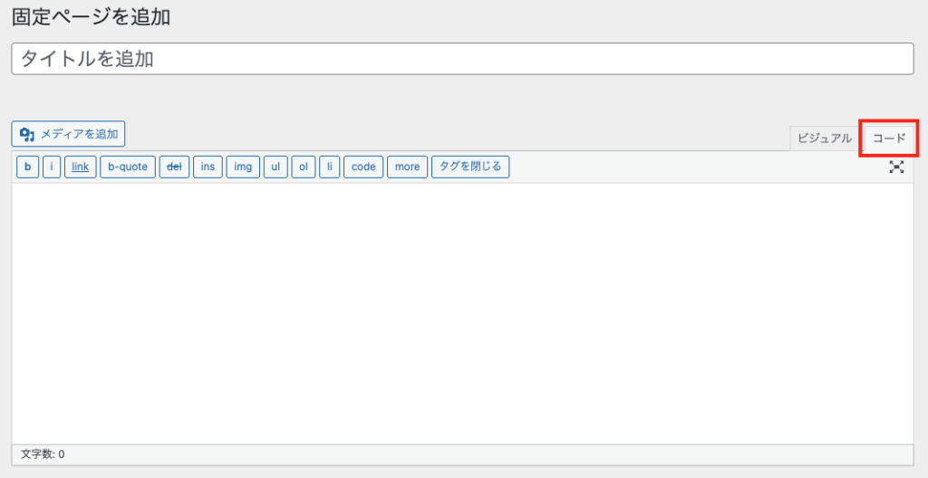- 管理画面で 「固定ページ > 新規追加」 を開きます。
