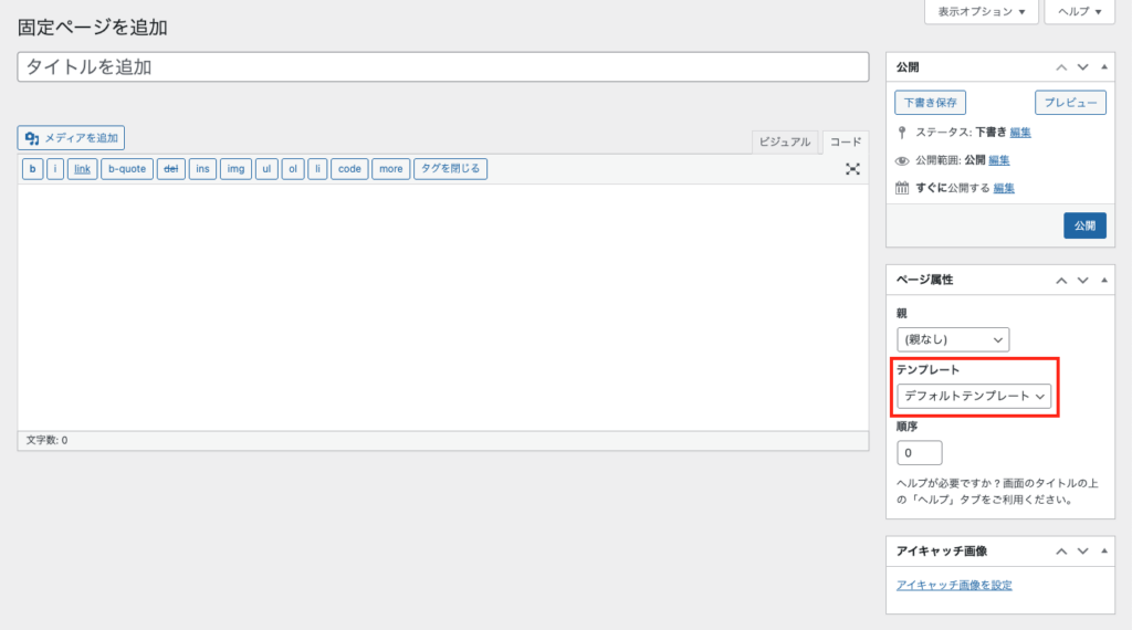 固定ページを管理画面から作成する